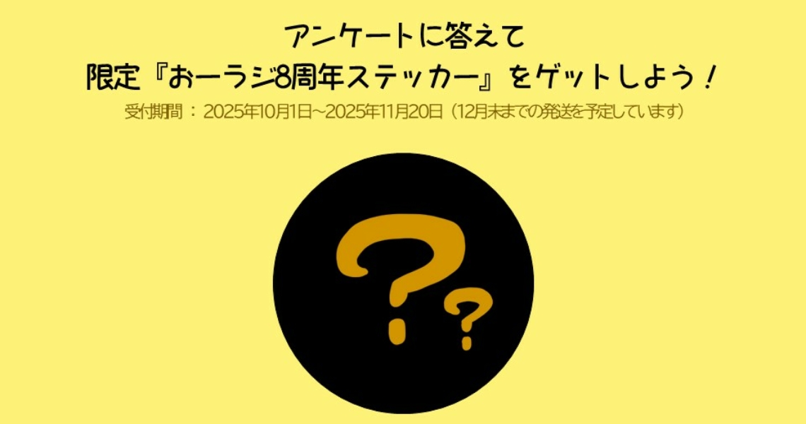 【11/20締切】おーラジ8周年記念ステッカーがもらえるアンケート現在受付中!