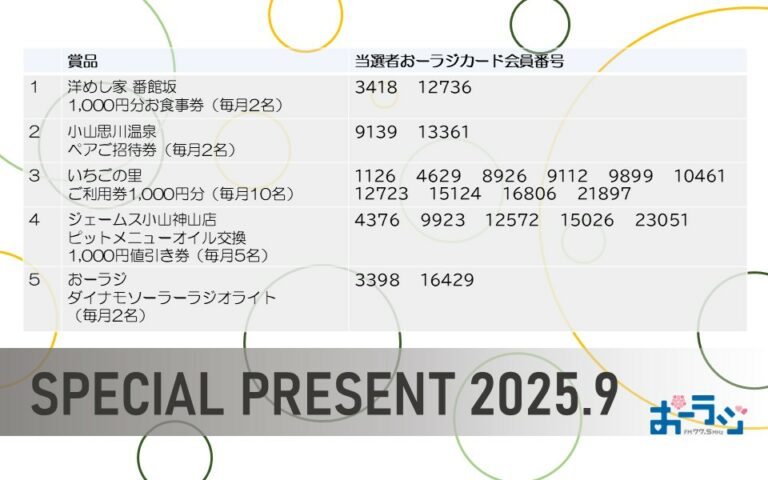 [2025.9]おーラジスペシャルプレゼント発表!!!