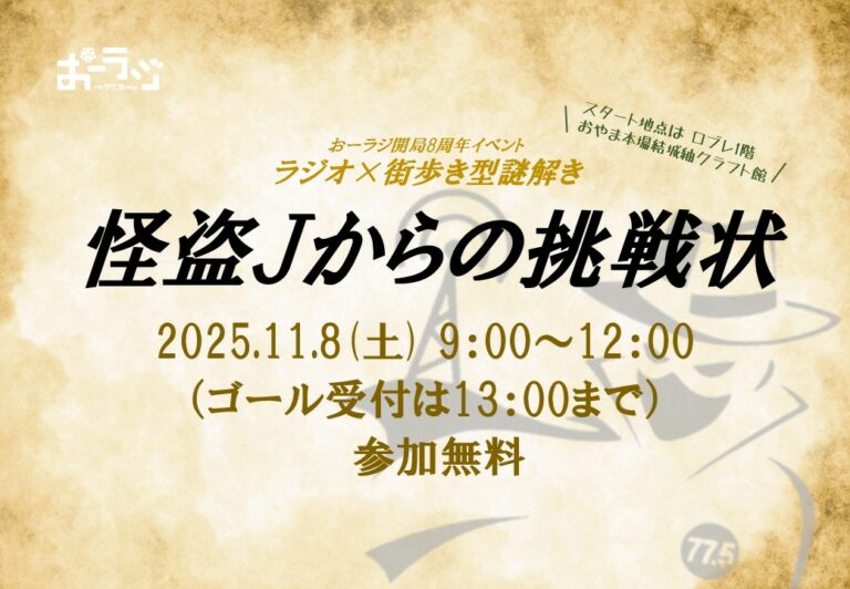 11/8㈯開催!ラジオ×街歩き型謎解き「怪盗Jからの挑戦状」(10/17更新)