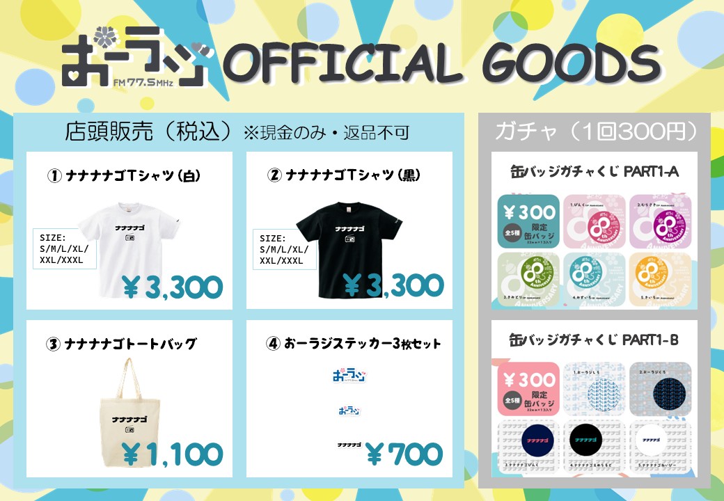 11/8㈯おーラジ8周年イベント当日、初のおーラジグッズを販売!ぜひお買い求めくださいね。10/21~11/5までご予約受付中!